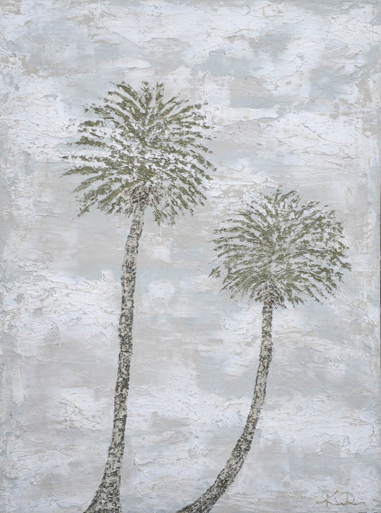 Minimalist and meditative, 2 Palms II captures the quiet rhythm of coastal life through textured brushwork and a soft, neutral palette. The two palms reach into a hazy sky, offering a gentle balance of simplicity and movement.