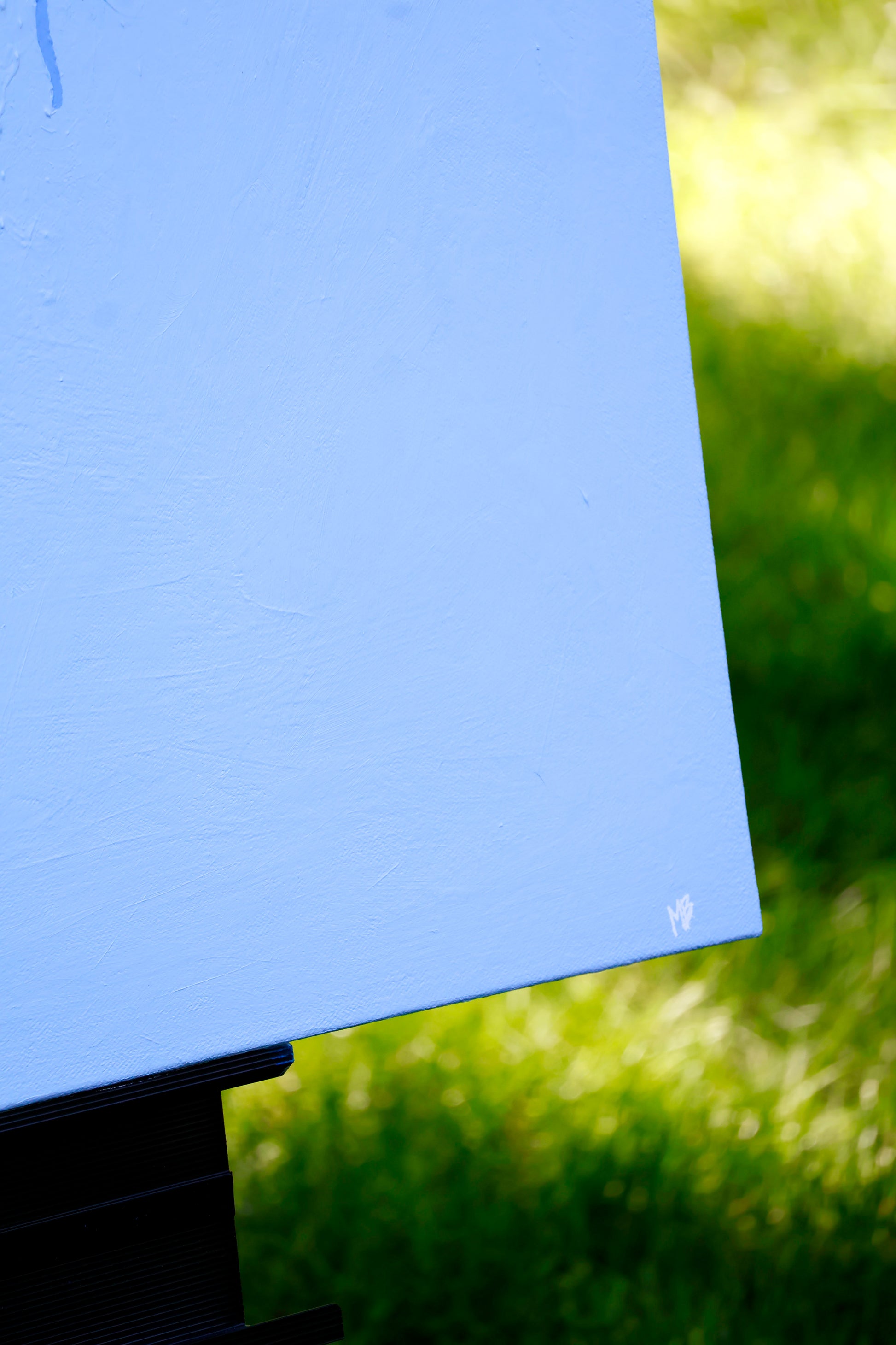 One of the artist’s favorite aspects of this painting is its texture. Built up in layers of heavy-body acrylic, the surface reveals subtle shifts and adjustments, embodying the stories and memories held in something as simple as a clothesline.