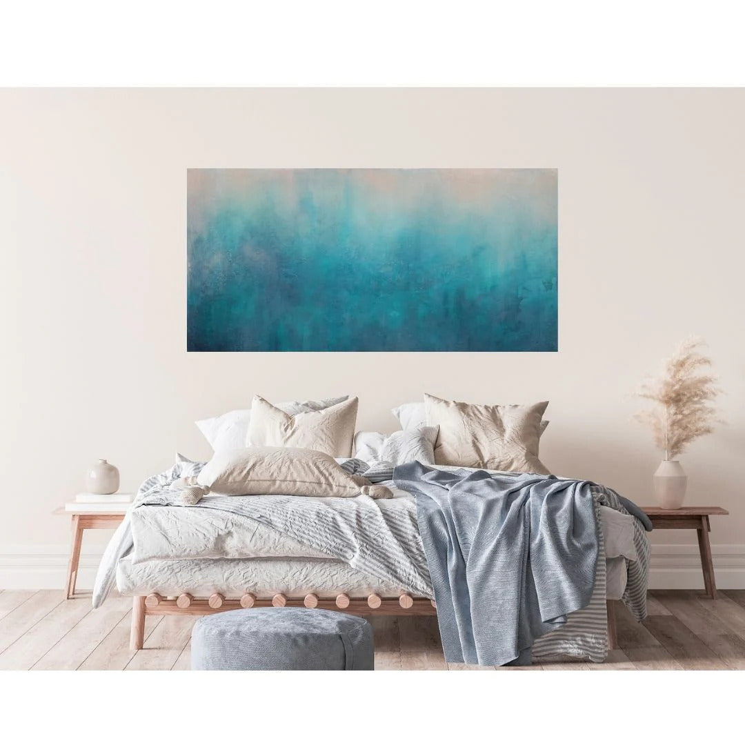 Part of Kate Shore’s Low Tide Series, this painting explores the textures and patterns left in the sand as the ocean recedes. Each layer of paint builds on the last, creating depth and movement that mirrors the ever-changing shoreline. The result is a soothing coastal landscape that brings the serenity of the sea into any space.