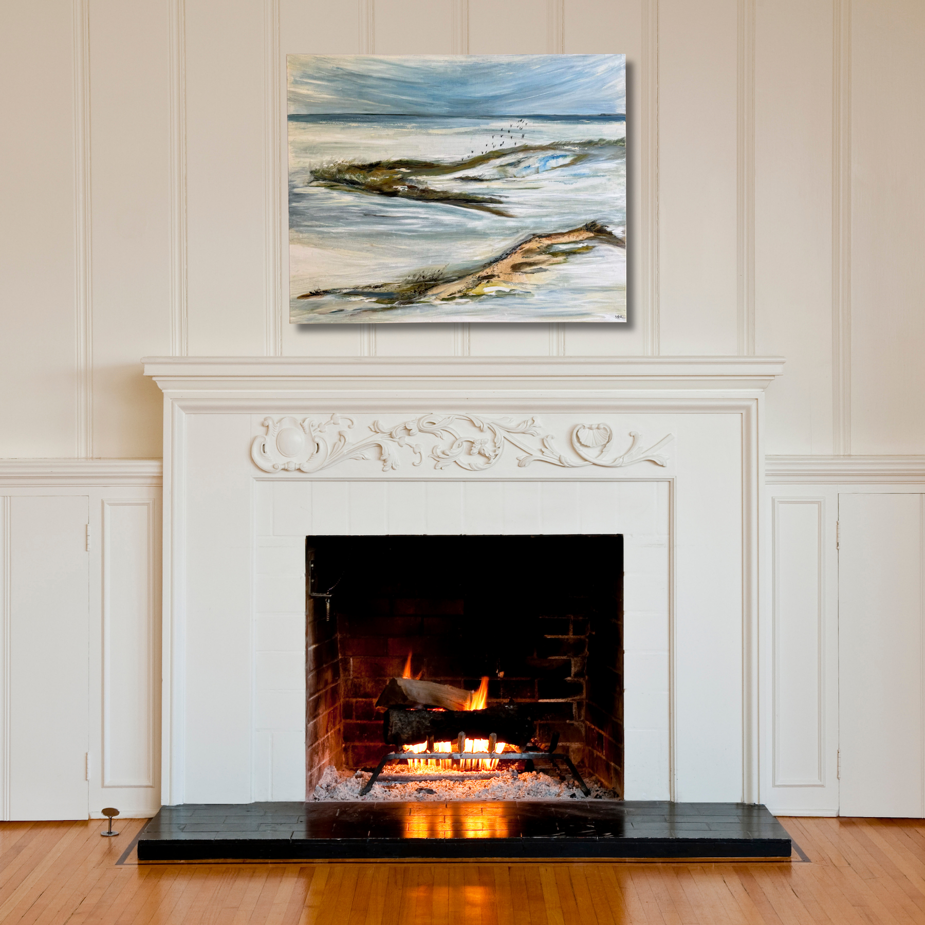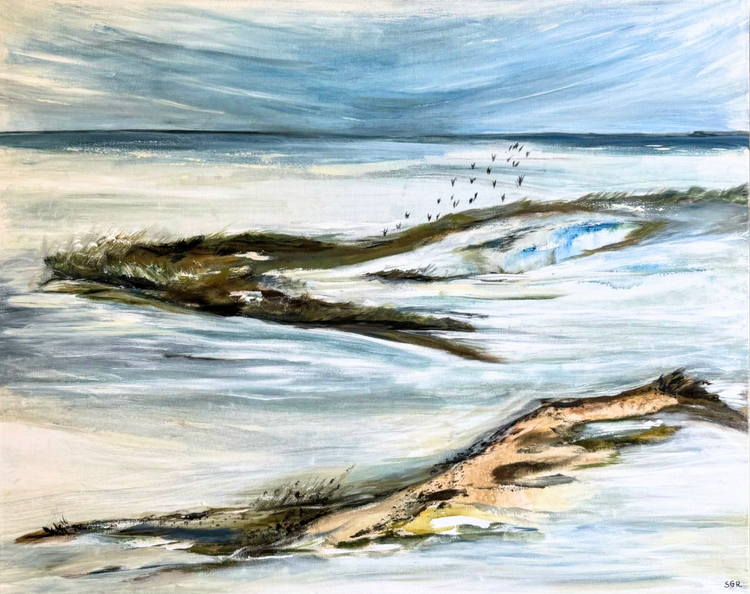 “Wild Tides” pulls you right into the push and pull of the shoreline. The dark seagrass clings to sandbars as the tide rolls in, and a line of birds quietly passes by like it’s nothing out of the ordinary. There’s movement here, but it doesn’t feel dramatic or loud. Just real. Just the ocean doing its thing.